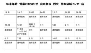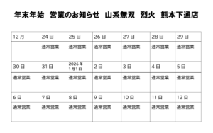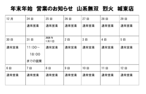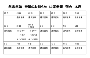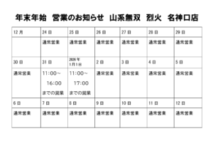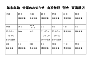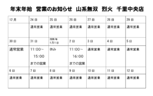 年末年始、営業のお知らせ。